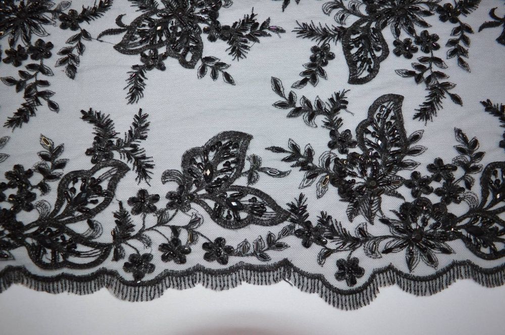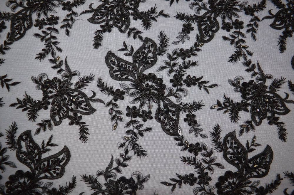 Tecido Tule Bordado Com Pedrarias Preto • Conexão Tecidos