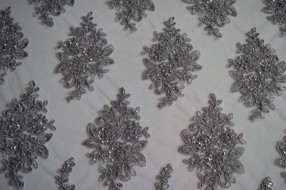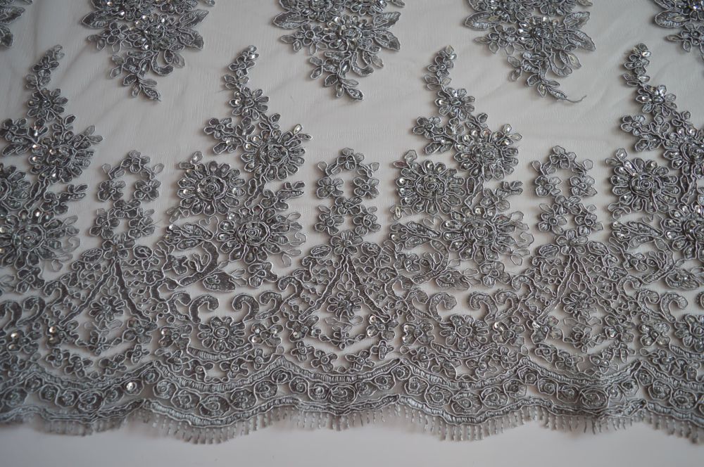 Tecido Tule Bordado Com Pedrarias Prata
