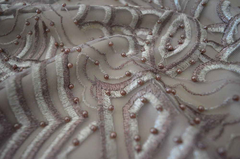 Tecido Tule Bordado Com Pedrarias Nude