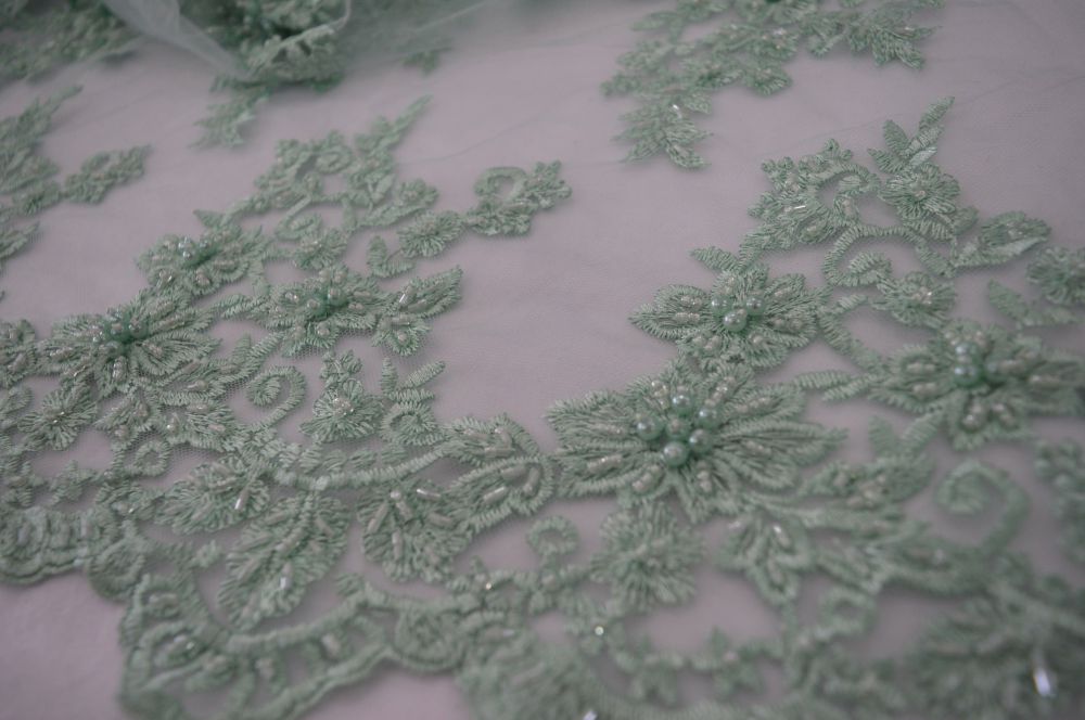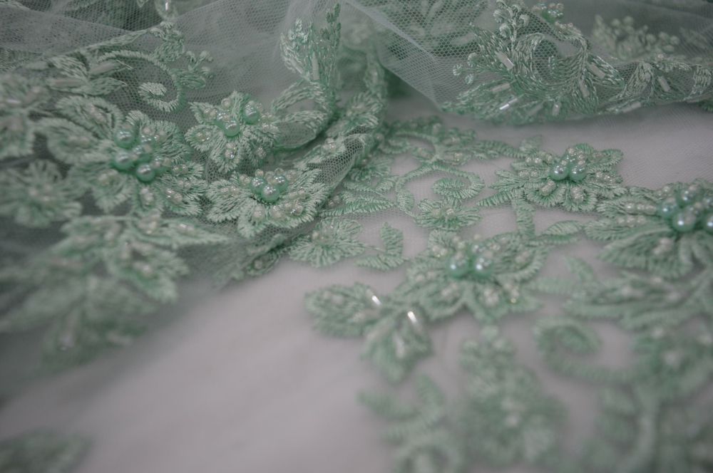 Tecido Tule Bordado Com Pedrarias Verde Água • Conexão Tecidos