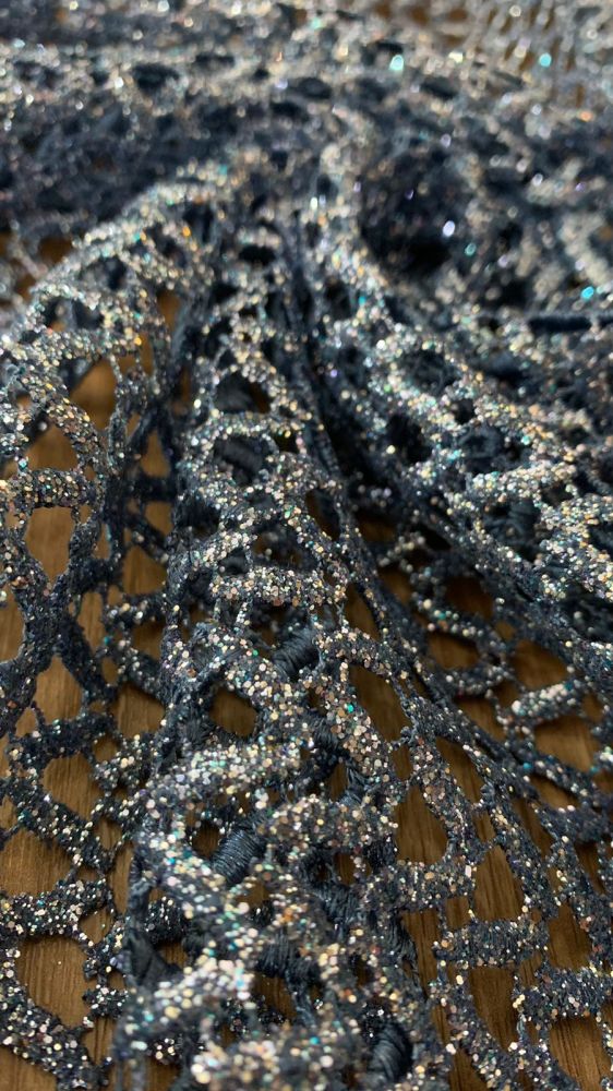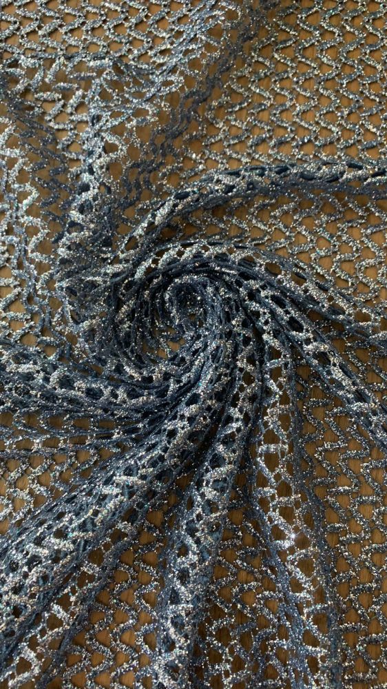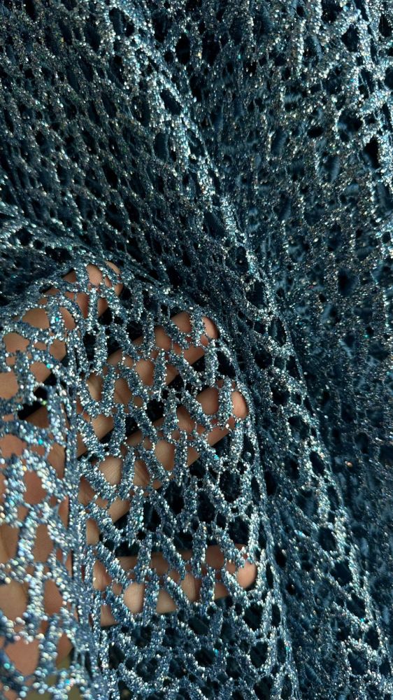 O Tecido Renda Guipuir Azul Glitter é um tecido que combina fibras de viscose com linho, resultando em um material leve, confortável e com aparência natural. Possui textura levemente rústica e visual sofisticado, sendo muito utilizado na moda contemporânea por unir frescor e elegância.