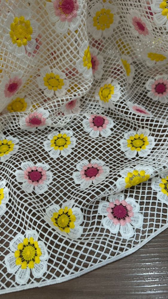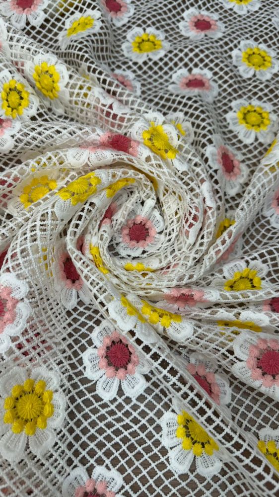 O Tecido Renda Guipuir Floral é um tecido que combina fibras de viscose com linho, resultando em um material leve, confortável e com aparência natural. Possui textura levemente rústica e visual sofisticado, sendo muito utilizado na moda contemporânea por unir frescor e elegância.