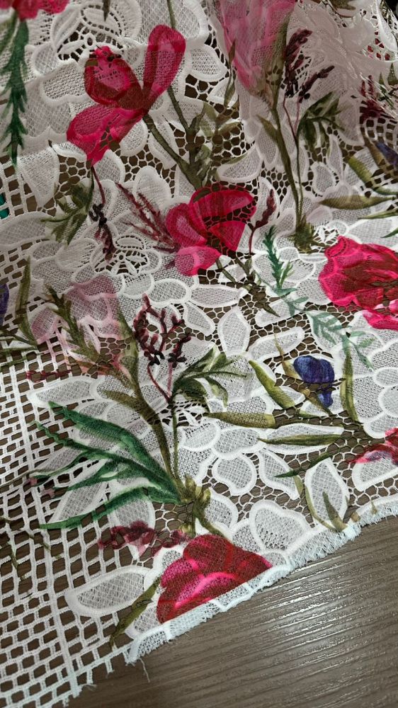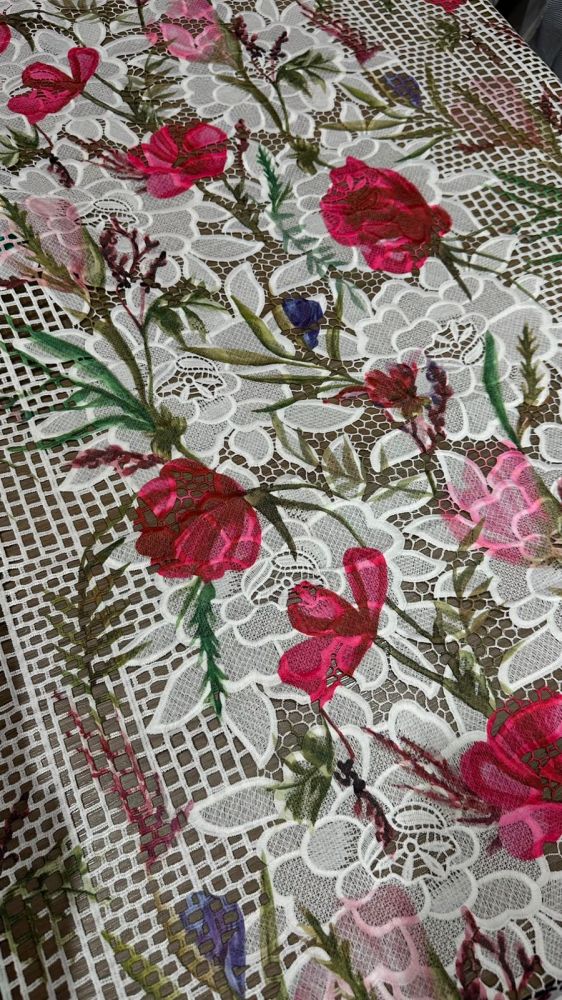 O Tecido Renda Guipuir Floral Delicadezi é um tecido que combina fibras de viscose com linho, resultando em um material leve, confortável e com aparência natural. Possui textura levemente rústica e visual sofisticado, sendo muito utilizado na moda contemporânea por unir frescor e elegância.