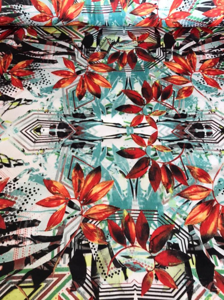 Tecido Sarja Acetinada Estampada Abstract Colors – Resistente, Estruturado e Versátil