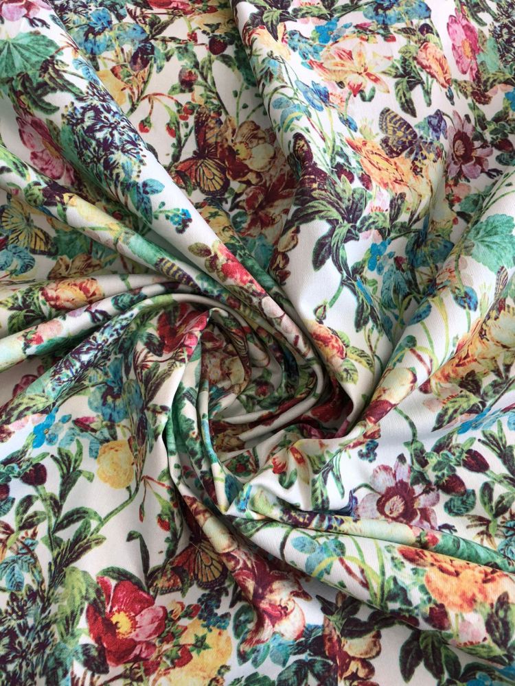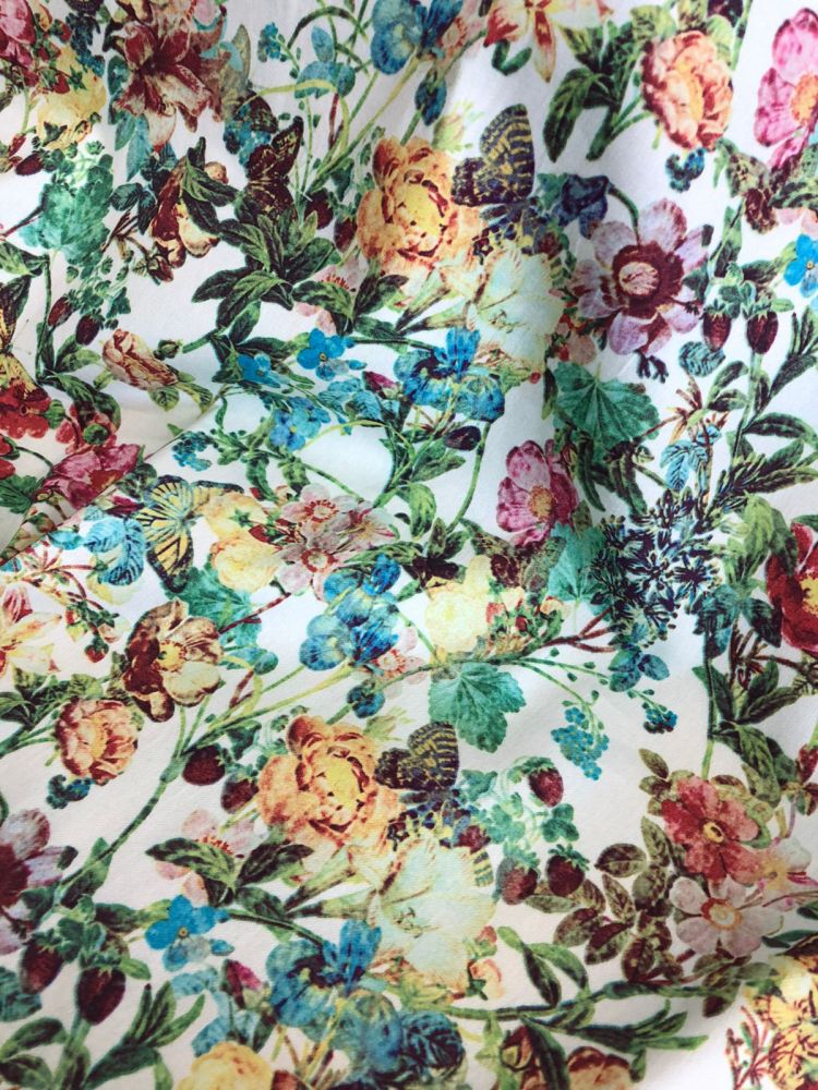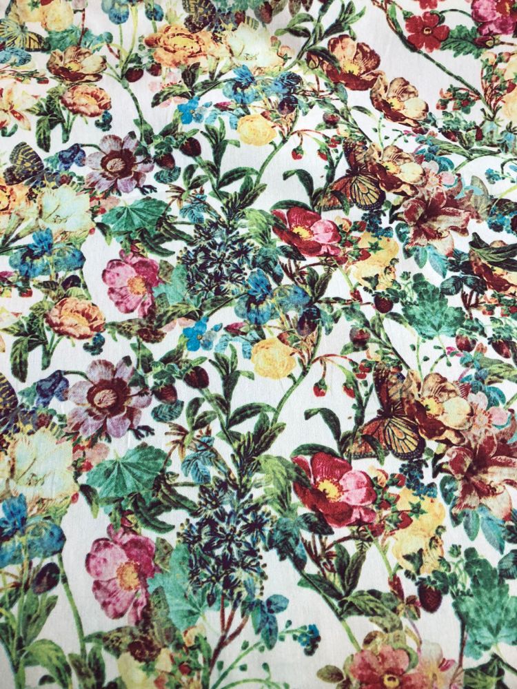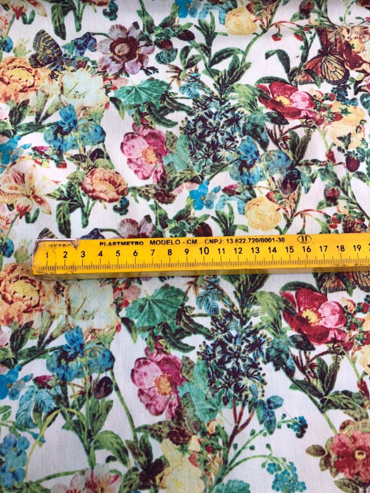 Tecido Sarja Leve Borboletas No Jardim