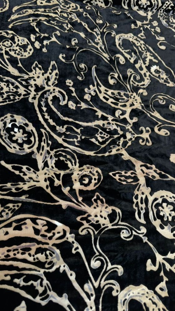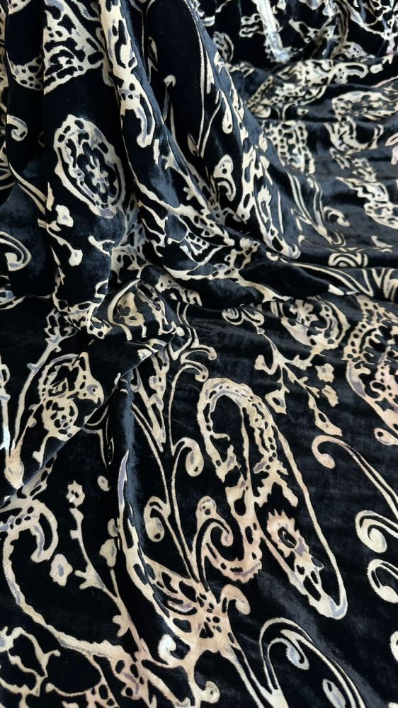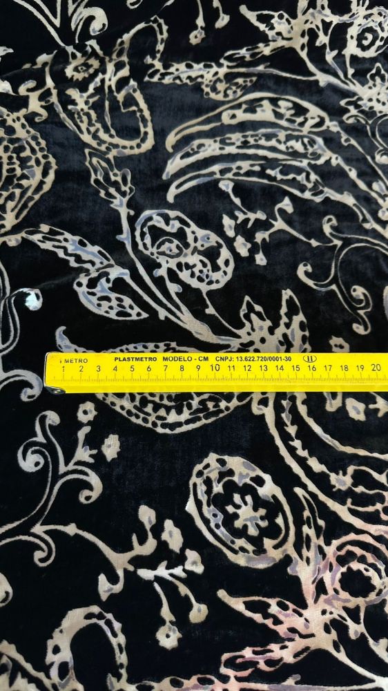 Tecido Veludo De Seda Preto Estampado