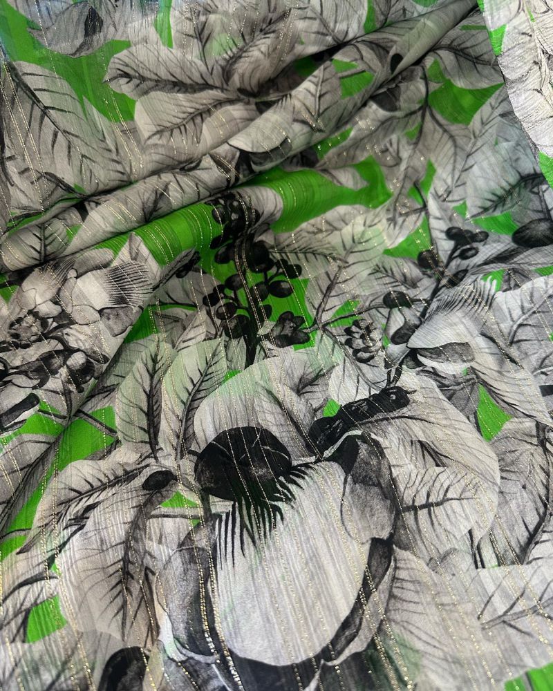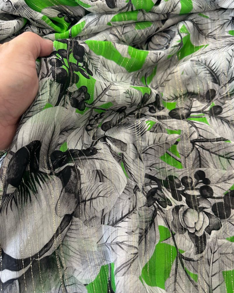 Tecido Chifom De Seda Foil Floresta Tropical Esmeralda – Natural, Leve e com Toque Rústico