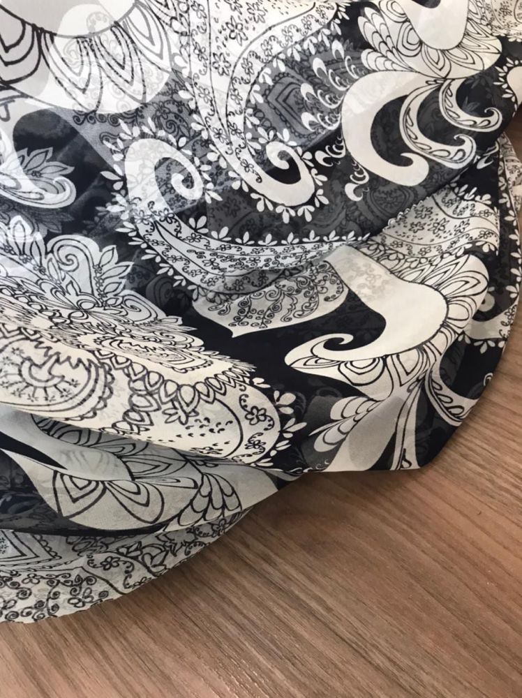 O Tecido Musseline De Seda Cashemir Ii é um tecido que combina fibras de viscose com linho, resultando em um material leve, confortável e com aparência natural. Possui textura levemente rústica e visual sofisticado, sendo muito utilizado na moda contemporânea por unir frescor e elegância.