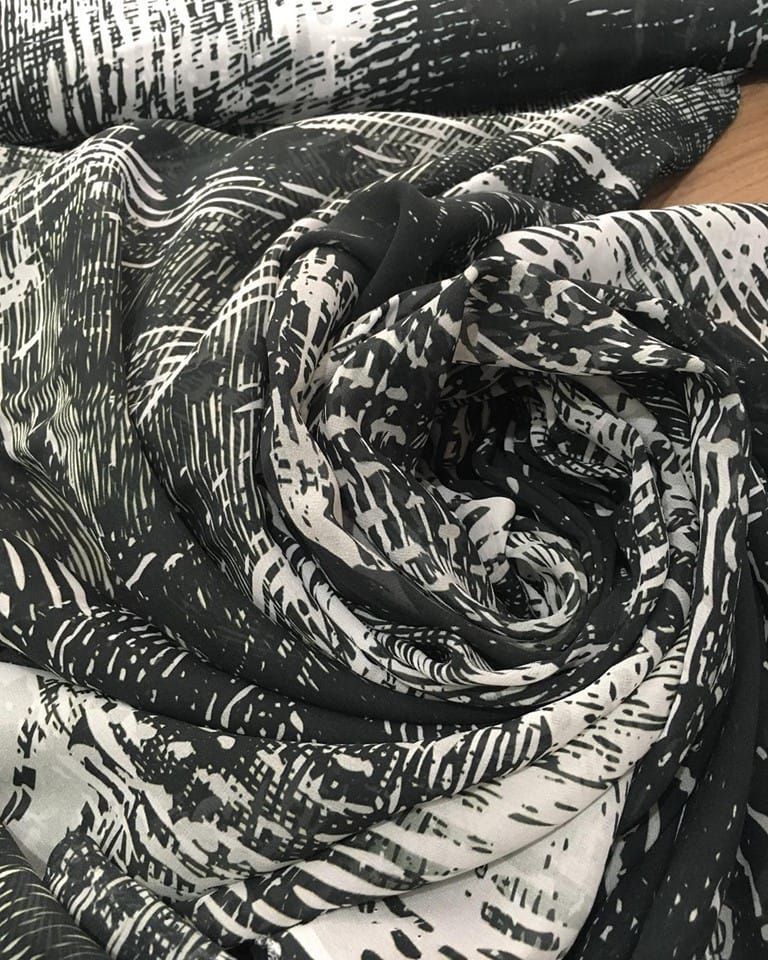 Tecido Musseline De Seda Estampada Black – Natural, Leve e com Toque Rústico