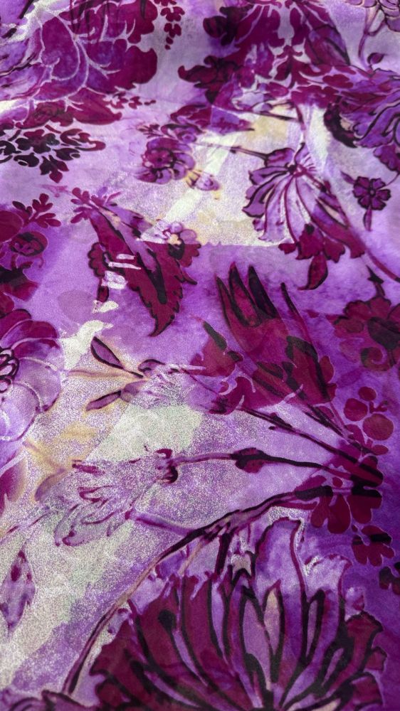 Tecido Musseline De Seda Estampada Violet Dark – Natural, Leve e com Toque Rústico