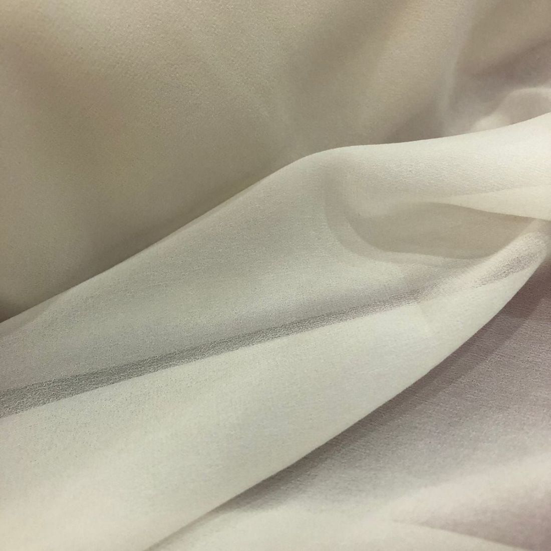 Tecido Musseline De Seda Lisa Off White com aparência natural, toque macio e caimento leve. Ideal para roupas frescas e elegantes, combinando o visual do linho com o conforto da viscose.