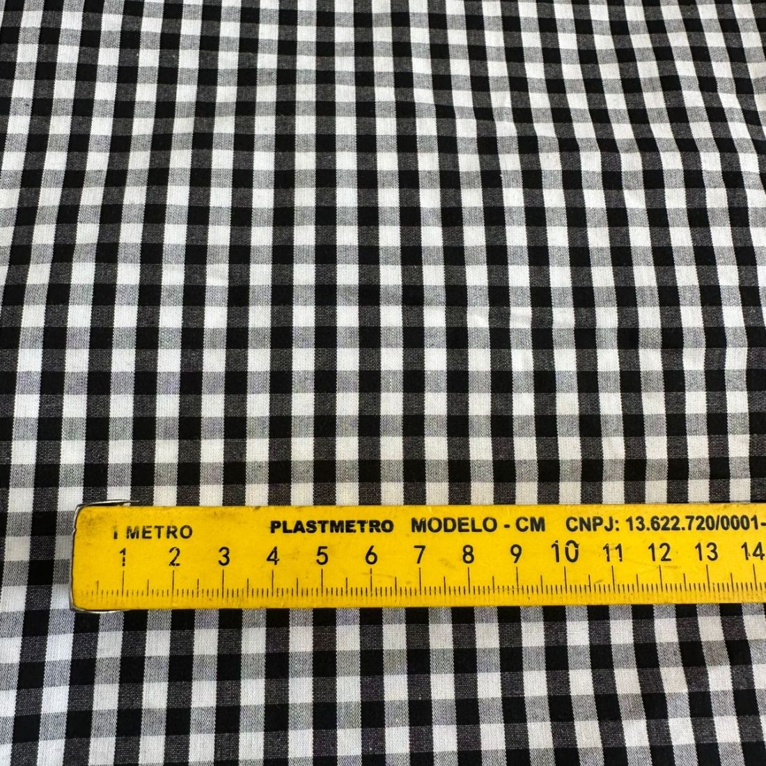 Tecido Tricoline Fio Tinto Vichy Preto Clássico com superfície lisa, toque macio e estrutura leve. Ideal para roupas, artesanato e peças que exigem acabamento delicado e costura precisa.