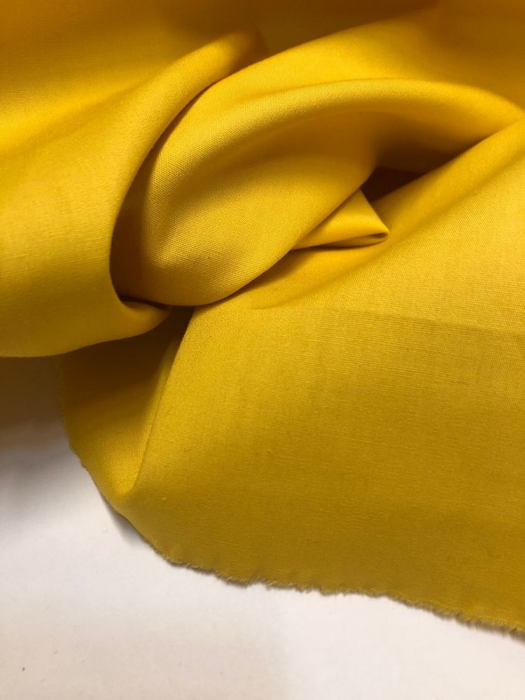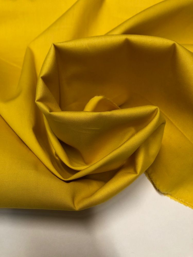 Tecido Tricoline Liso Amarelo Gema com superfície lisa, toque macio e estrutura leve. Ideal para roupas, artesanato e peças que exigem acabamento delicado e costura precisa.