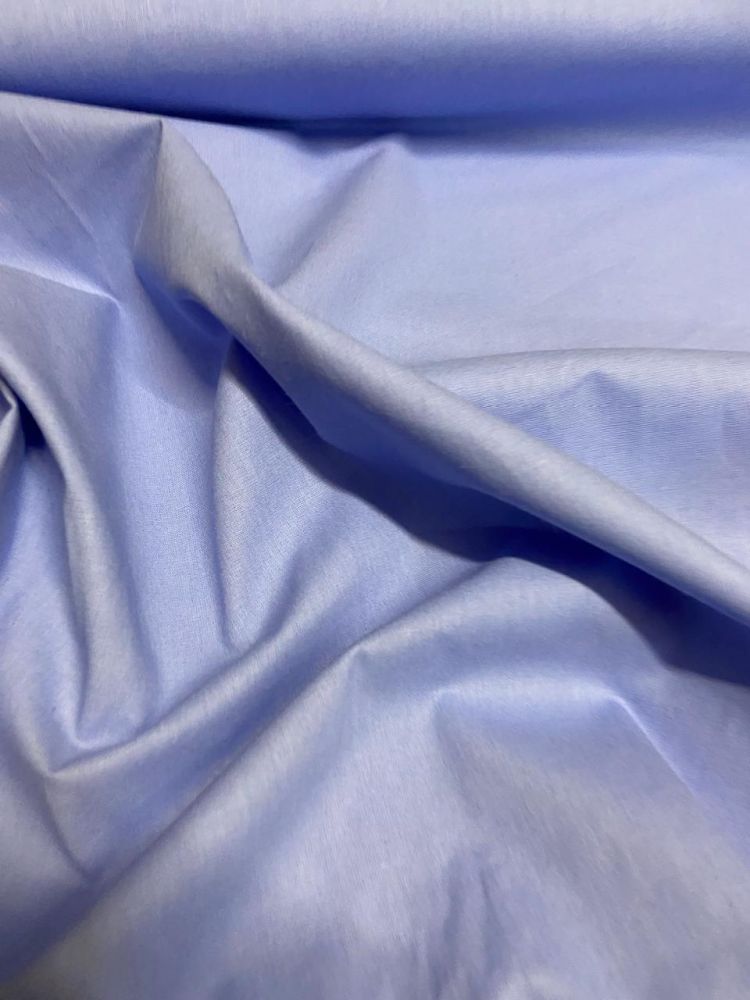 Tecido Tricoline Liso Azul Claro com superfície lisa, toque macio e estrutura leve. Ideal para roupas, artesanato e peças que exigem acabamento delicado e costura precisa.