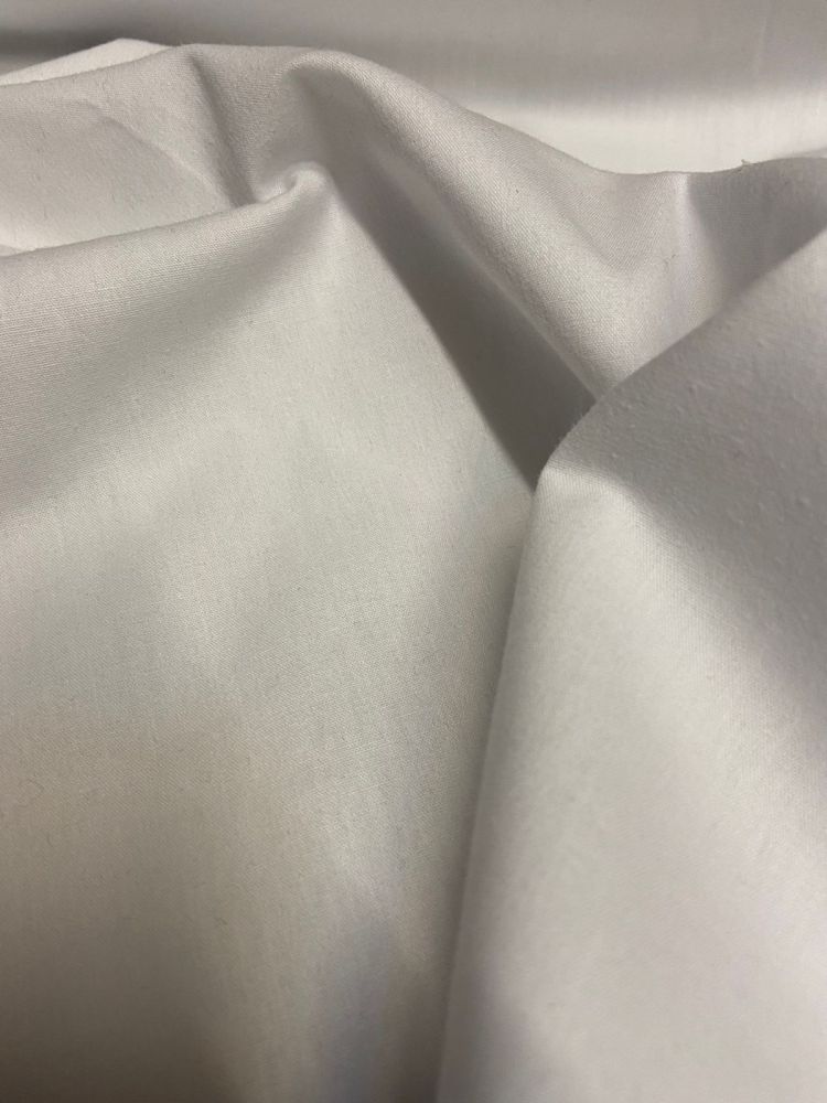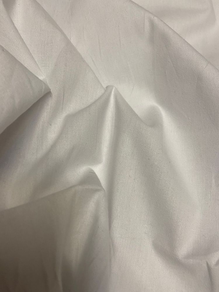 Tecido Tricoline Liso Branco com superfície lisa, toque macio e estrutura leve. Ideal para roupas, artesanato e peças que exigem acabamento delicado e costura precisa.