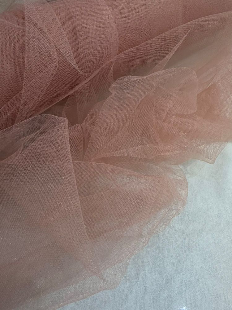 Tecido Tule Ilusion Rosa Antigo extremamente fino e transparente, desenvolvido para criar efeito visual quase imperceptível sobre a pele. É amplamente utilizado em vestidos de noiva e moda festa para acabamento delicado e sofisticado.