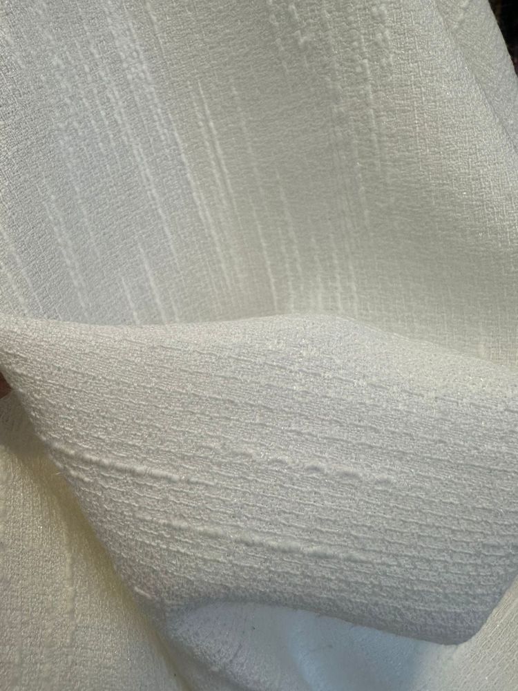 Tecido Tweed Chanell Off com trama encorpada, textura marcante e visual clássico. Ideal para peças sofisticadas que combinam estrutura, elegância e estilo atemporal.