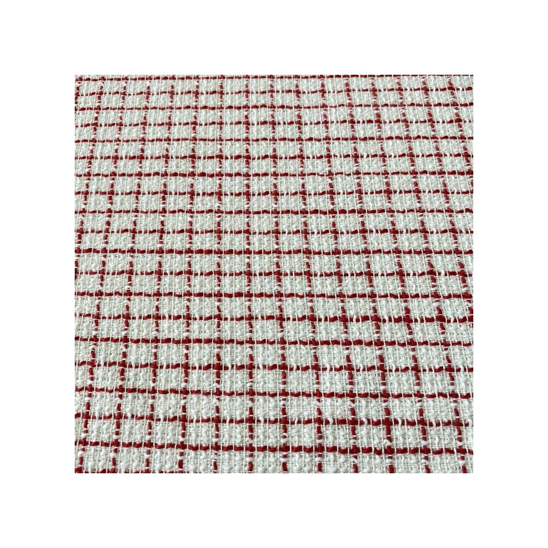 Tecido Tweed Grid Red com trama encorpada, textura marcante e visual clássico. Ideal para peças sofisticadas que combinam estrutura, elegância e estilo atemporal.