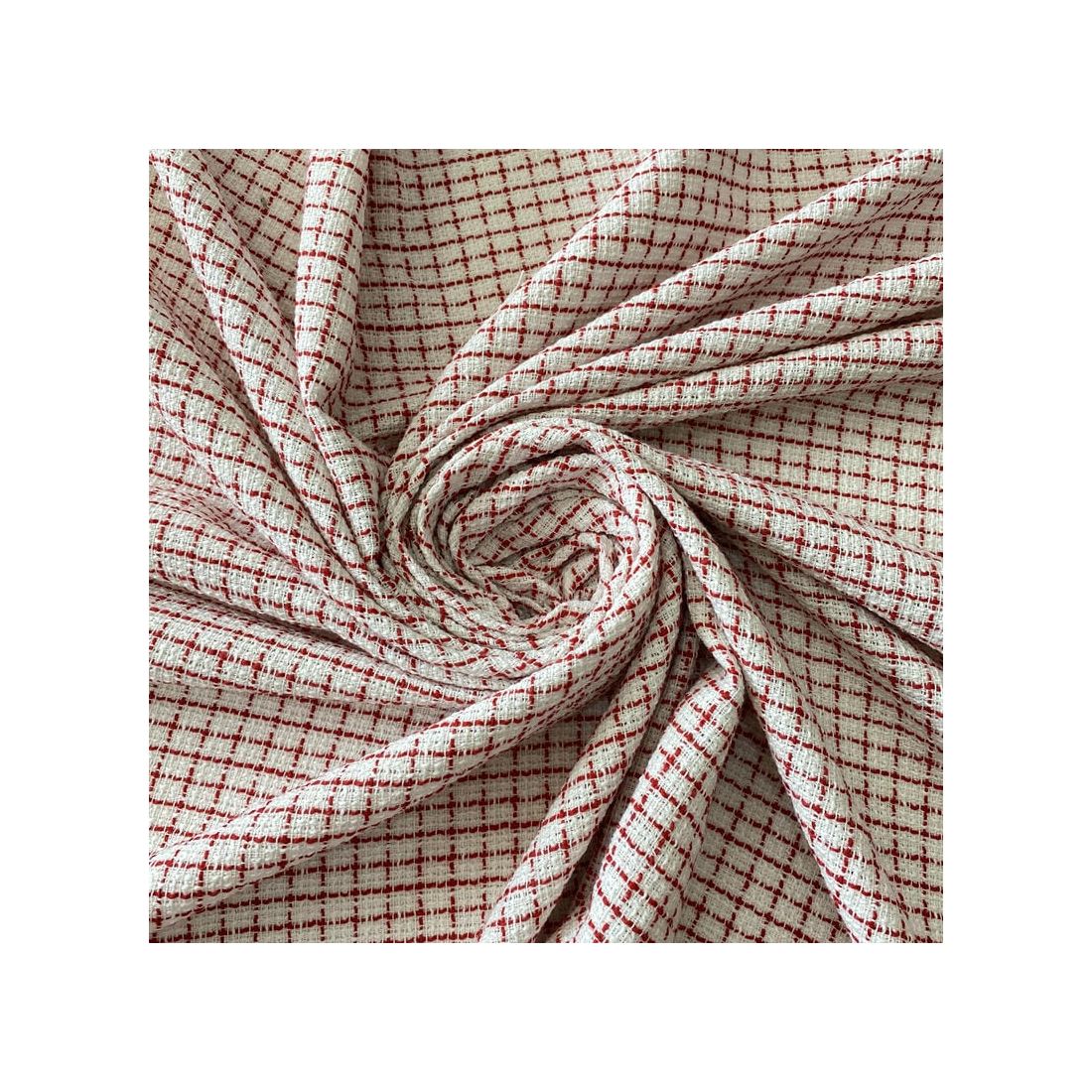 Tecido Tweed Grid Red – Texturizado, Elegante e Atemporal