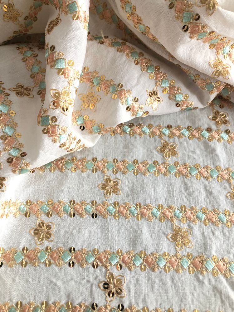 Tecido Viscolinho Bordado Indiano Bali Verde