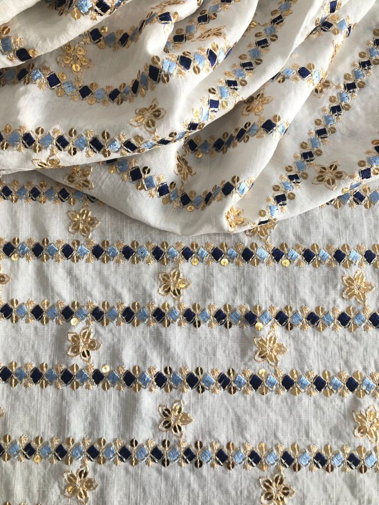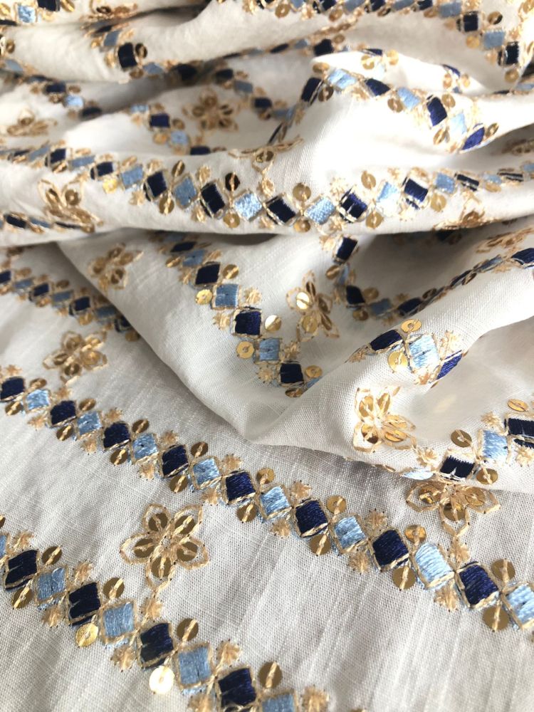 Tecido Viscolinho Bordado Indiano Bali Azul Marinho