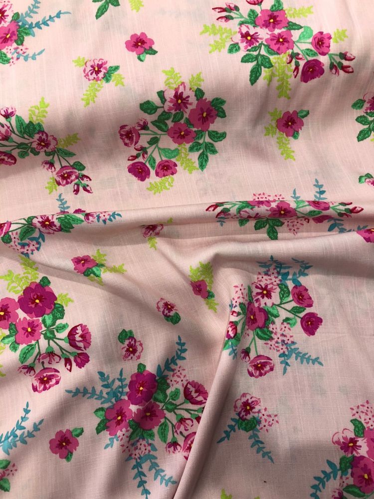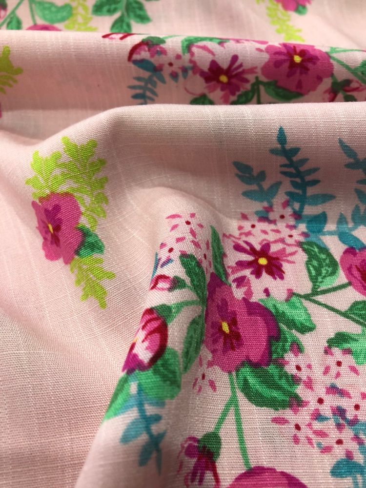 Tecido Viscolinho EstampadoFloribela com aparência natural, toque macio e caimento leve. Ideal para roupas frescas e elegantes, combinando o visual do linho com o conforto da viscose.