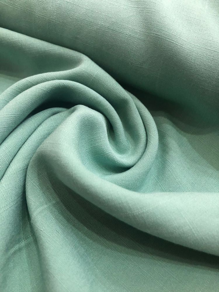 Tecido Viscolinho Sage com aparência natural, toque macio e caimento leve. Ideal para roupas frescas e elegantes, combinando o visual do linho com o conforto da viscose.
