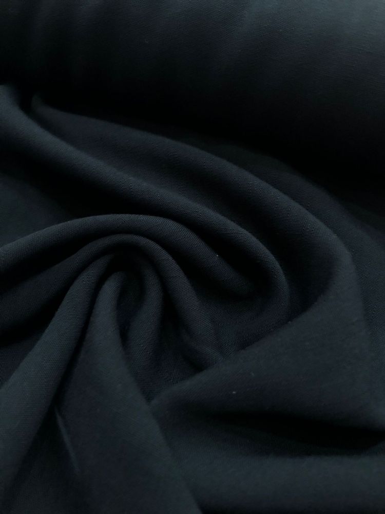 Tecido Viscolinho Preto com aparência natural, toque macio e caimento leve. Ideal para roupas frescas e elegantes, combinando o visual do linho com o conforto da viscose.