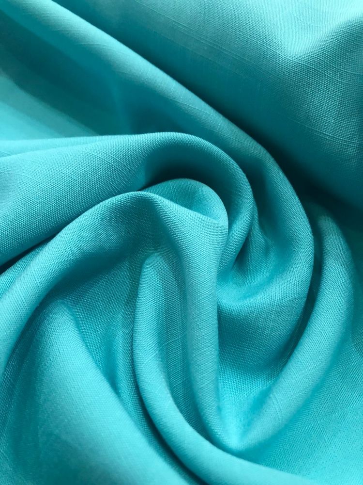 Tecido Viscolinho Azul Celeste com aparência natural, toque macio e caimento leve. Ideal para roupas frescas e elegantes, combinando o visual do linho com o conforto da viscose.
