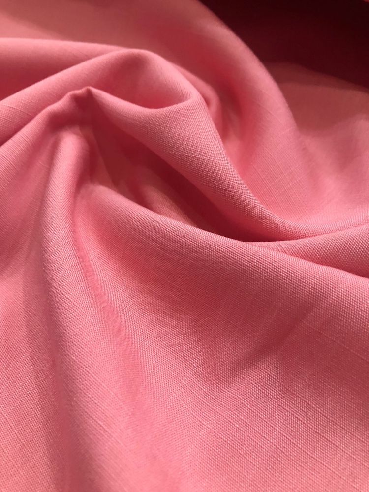 Tecido Viscolinho Rose Goiaba com aparência natural, toque macio e caimento leve. Ideal para roupas frescas e elegantes, combinando o visual do linho com o conforto da viscose.