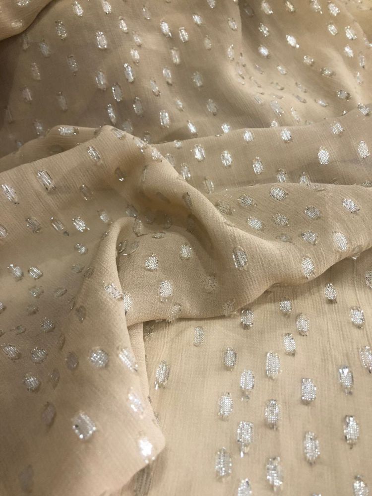 Tecido Chifom De Viscose Foil Fundo Bege – Leve, Respirável e Confortável