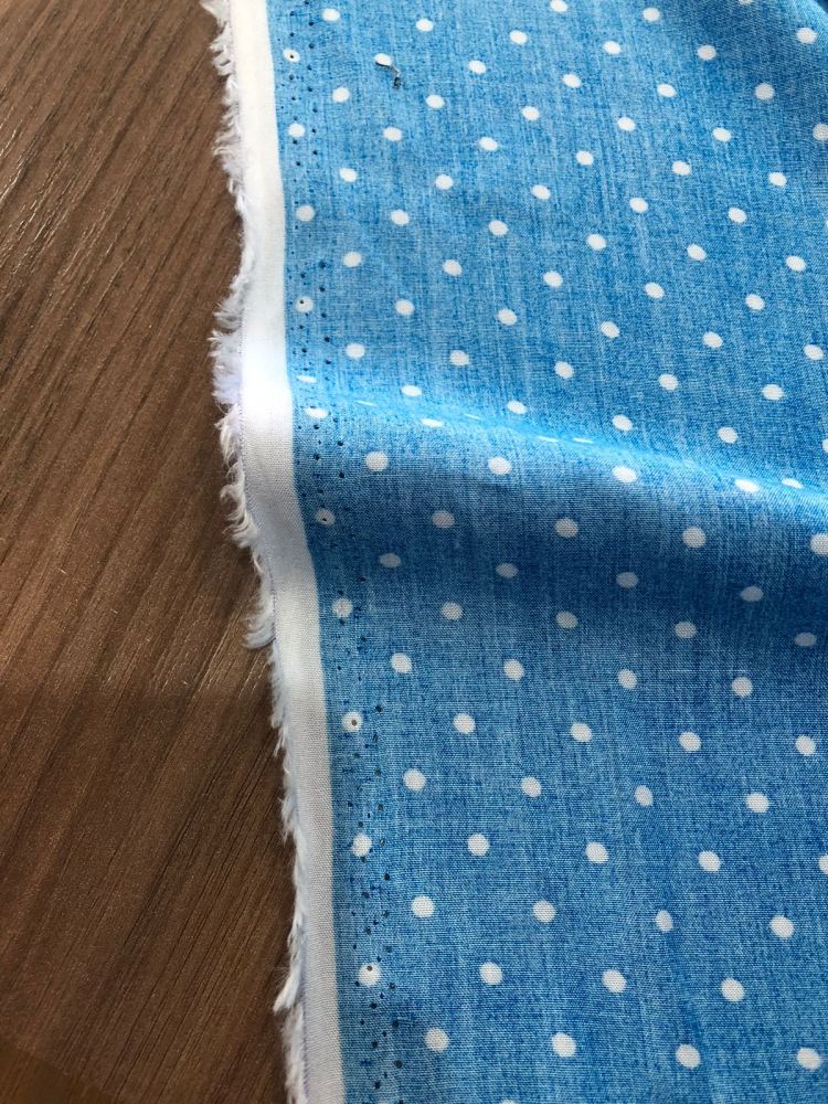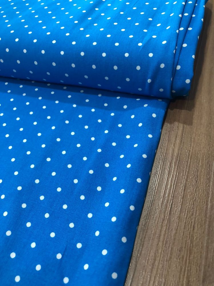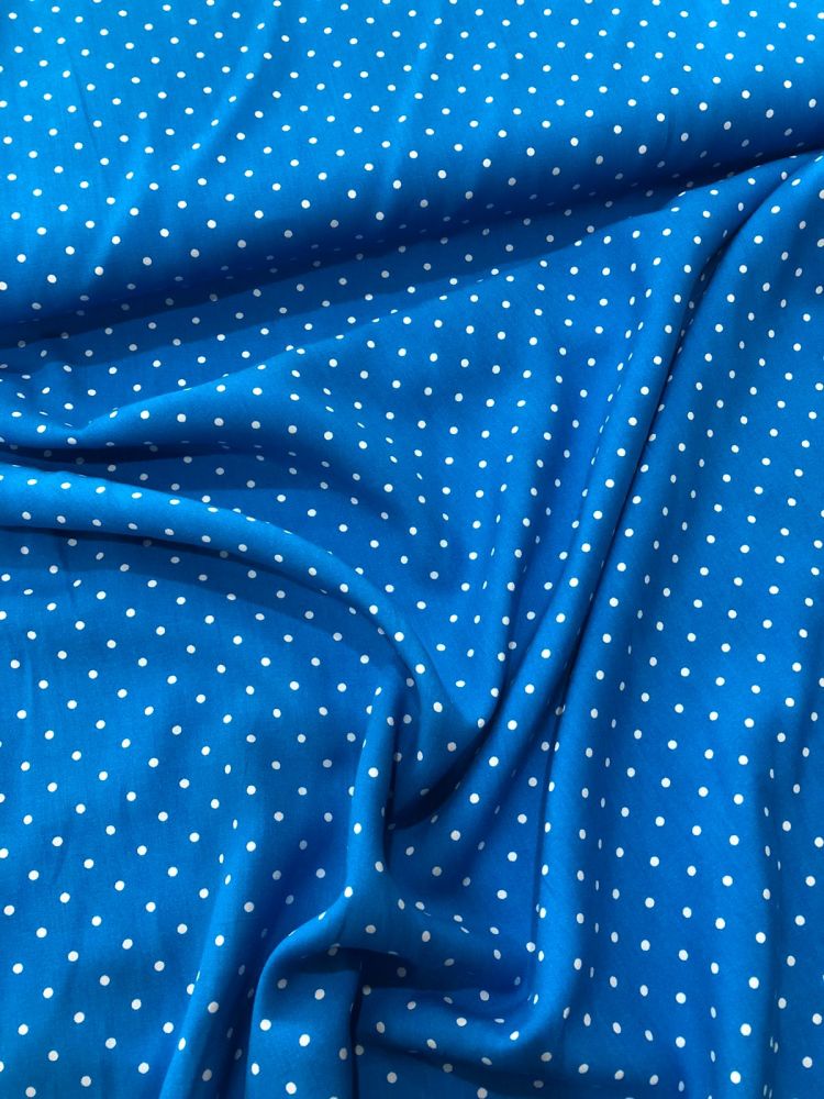 Tecido Viscose Estampada Poá Azul E Off White – Leve, Respirável e Confortável
